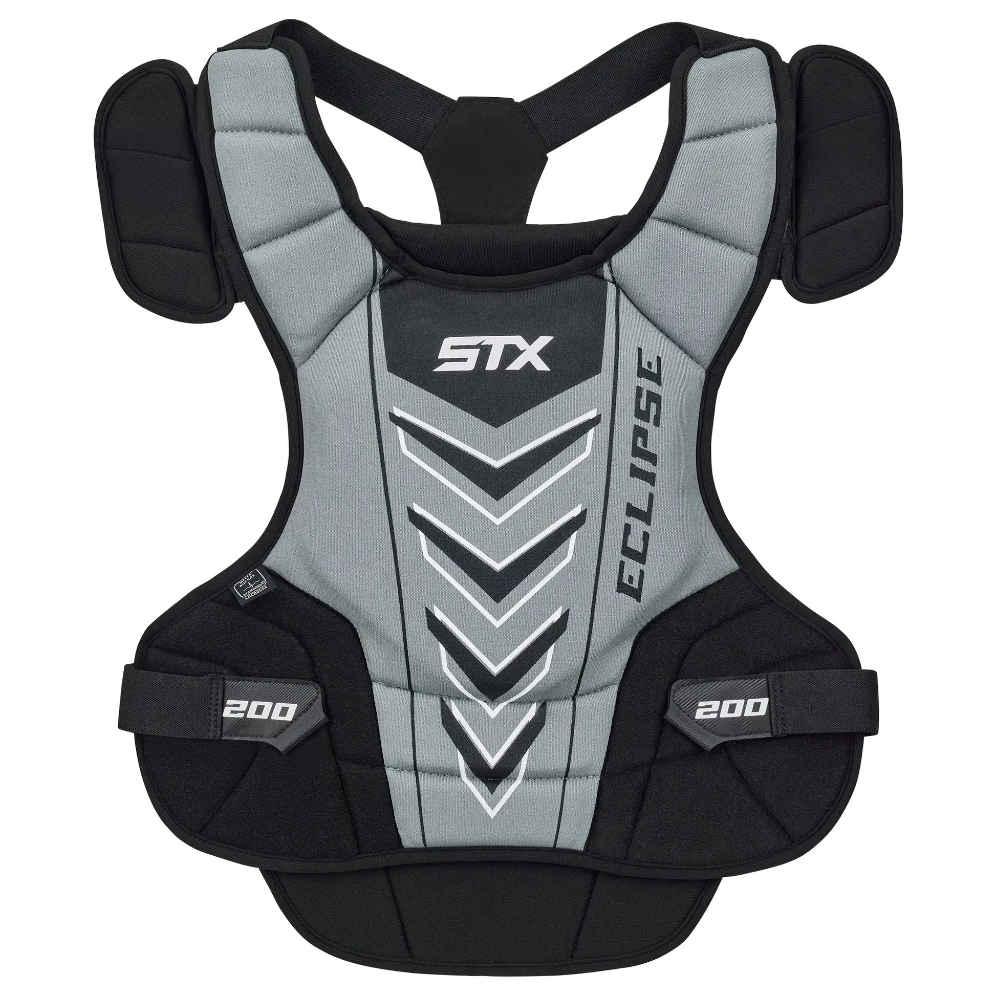 The STX Eclipse 200™ lacrosse goalie chest protector is ideal for the beginner-level goalie and meets the NOSCAE™ standard for goalie chest protection. Inspired by our more advanced models, the Eclipse 200™ is constructed with hard plastic throughout the chest plate and shoulder caps for increased protection. We've incorporated multiple hinges to enhance fit, allowing for unrestricted mobility.
